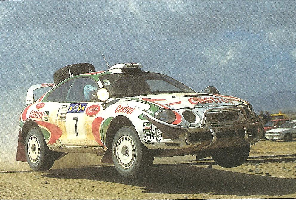 A história da Toyota nos rallys internacionais iniciou-se com a inscrição do Campeão sul africano de rallys, Jan Hettema, numa prova do campeonato nacional, com o modelo, Corona Hard Top. Porém , a primeira prova com apoio de fábrica, no âmbito de conquistar os mercados europeus foi o Monte Carlo de 1970, quando Jan Hettema e o piloto, versátil, Vic Elford, estrearam em Monte Carlo o modelo Corona Mark II G SS, sem resultados ambos desistiram no decorrer da prova. Em 1972, a Toyota voltava a Europa, para disputar o Rally do RAC, Ove Andersson estreava o modelo Celica era 9º, o primeiro resultado da marca ao mais alto nível e um início de uma longa duração do piloto sueco com a marca nipónica. Em 1973, o programa da Toyota continuava a avançar timidamente e os rallys escolhidos para a temporada era a Acrópele e o RAC , mas estas experiências no novo mundial de rallys seria interrompido no ano seguinte face às consequências da Crise do Petróleo. Ove Andersson era já um personagem influente no Japão e tornava-se manager do team para além de piloto oficial e em pouco tempo depois o responsável pelo Toyota Team Europa. Apesar de tudo o Celica obtinha a sua primeira vitória no mundial de rallys, o Press on Regardless ganha pelo piloto local Walter Boyce. Em 1975 a aventura Toyota na Europa recomeçava, Ove Andersson obtinha um 3º lugar em Portugal e Hannu Mikkola vencia nos 1000 lagos, a máquina era o Corolha TE20 , que debitava cerca de 185 CV. O sucesso do modelo em termos de competitividade, manteve-o no activo até 1977 quando é estreado o Celica RA20 equipado com um motor de 2 Litros e 16 válvulas, um carro frágil mas que mantinha a progressão da marca nos rallys europeus com vitórias absolutas em vários campeonatos nacionais. O ano de 1982, corresponde a mudanças radicais nos regulamentos da F.I.A, surgiam os super carros ou melhor os grupo B e a marca nipónica, construía um dos motores turbos mais robustos que correram no Mundial de Rallys o denominado TA 64, que acabaria por equipar o Celica Turbo TC e que se tornou rapidamente num dos modelos com maior sucesso nas provas africanas. A morte trágica de Henri Toivonem, acabaria com os Grupo B, quando a Toyota testava dois modelos do futuro Grupo S, que marcaria a futura regulamentação e o desejo de ganhar o Mundial de rallys uma das directrizes da casa mãe era amputado. Mas a Toyota não parou o seu projecto de desenvolver um carro ganhador, face à nova regulamentação o Grupo A.O início foi desastroso o Supra 3 Litros era pouco competitivo, em 1988 estreava-se o Celica GT4 e era o início do período áureo da Toyota consagrado por outros três modelos carismáticos: o Celica Turbo 4WD, o Celica GT-Four e o Corolha WRC que marcou o fim da marca a nível da sua participação oficial. A Toyota, obteve dois títulos, Mundiais em 1993 e 1999 e decisivamente tinha conquistado o mercado europeu como construtor o objectiva primordial da aventura iniciada em 1973. As vitórias 43 da marca no Mundial de rallys e no WRC: Toyota Celica (A22) - 1974 – Press on Regarless – Walter Boyce; 1975 –Corolha Levin – H. Mikkola; 1982- Celica (RA63), B.Waldegaard (Nova Zelândia); 1984/1985 e 1986: - Celica TC Turbo (B.Waldegarrd – Costa do Marfim (1983 e 1986) e Safari (1983 e 1984); J.Kankkunen (Safari e Costa Marfim -1986); Celica GT4 (duas versões) – 1989/1994 – C.Sainz (1990-Acrópele,Nova Zelândia, 1000 Lagos e RAC – 1991- Monte Carlo, Portugal, Córsega, Nova Zelândia, Argentina,Catalunha – 1992 –Safari, Nova Zelândia, Catalunha e RAC); A.Schwarz (Catalunha-1991); M.Joasson (Suécia-1992); D.Auriol (1993- Monte Carlo;1994-Córsega e Argentina; 1995- Córsega , 1998 –Catalunha; 1999 –Chipre));J.Kankkunen (1993-Safari,Argentina, 1000 Lagos, Austrália, RAC e Portugal); Y.Duncan (Safari -1994); Corolha WRC-Carlos Sainz (1998 – (Monte Carlo, Nova Zelândia e Espanha). A Toyota obteve os títulos de marcas em 1993,1994 e 1999. A nível de pilotos foram campeões ao serviço da Toyota: C. Sainz (1990 e 1992); J. Kannkunen (1991 e 1993) e Didier Auriol (1994).